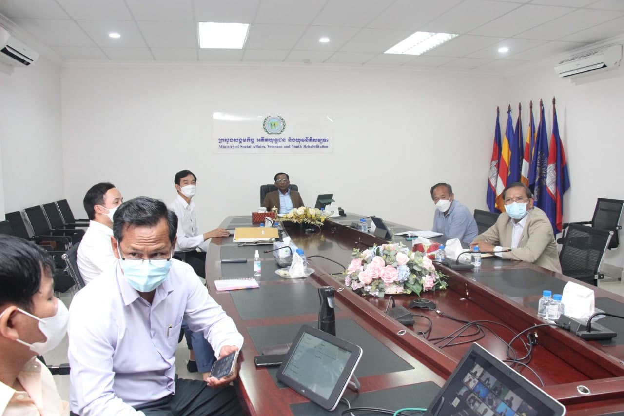 នារសៀលថ្ងៃទី០៦ ខែកញ្ញា ឆ្នាំ២០២១ ឯកឧត្តម វង សូត រដ្ឋមន្ត្រីនិងថ្នាក់ដឹកនាំពាក់ព័ន្ធនៃក្រសួងសង្គមកិច្ច អតីតយុទ្ធជន និងយុវនីតិសម្បទា អញ្ចេីញចូលរួមកិច្ចប្រជុំគណៈប្រចាំការនៃគណ:កម្មការជាតិប្រយុទ្ធនឹងជំងឺកូវីដ-១៩ ដើម្បីពិនិត្យ ពិភាក្សាលើសេចក្តីព្រាងផែនការសកម្មភាពស្តីពីការចាក់វ៉ាក់សាំងការពារជំងឺកូវីដ១៩ ដូសជម្រុញ ក្រោមអធិបតីភាព ឯកឧត្តមអគ្គបណ្ឌិតសភាចារ្យ អូន ព័ន្ធមុនីរ័ត្ន ឧបនាយករដ្ឋមន្រ្តី រដ្ឋមន្រ្តីក្រសួងសេដ្ឋកិច្ច និងហិរញ្ញវត្ថុ និងជាប្រធានគណៈប្រចាំការ នៃគណ:កម្មការជាតិប្រយុទ្ធនឹងជំងឺកូវីដ-១៩ នៅទីស្តីការក្រសួងក្រសួងសង្គមកិច្ច អតីតយុទ្ធជន និងយុវនីតិសម្បទា តាមប្រព័ន្ធអនឡាញ Zoom។