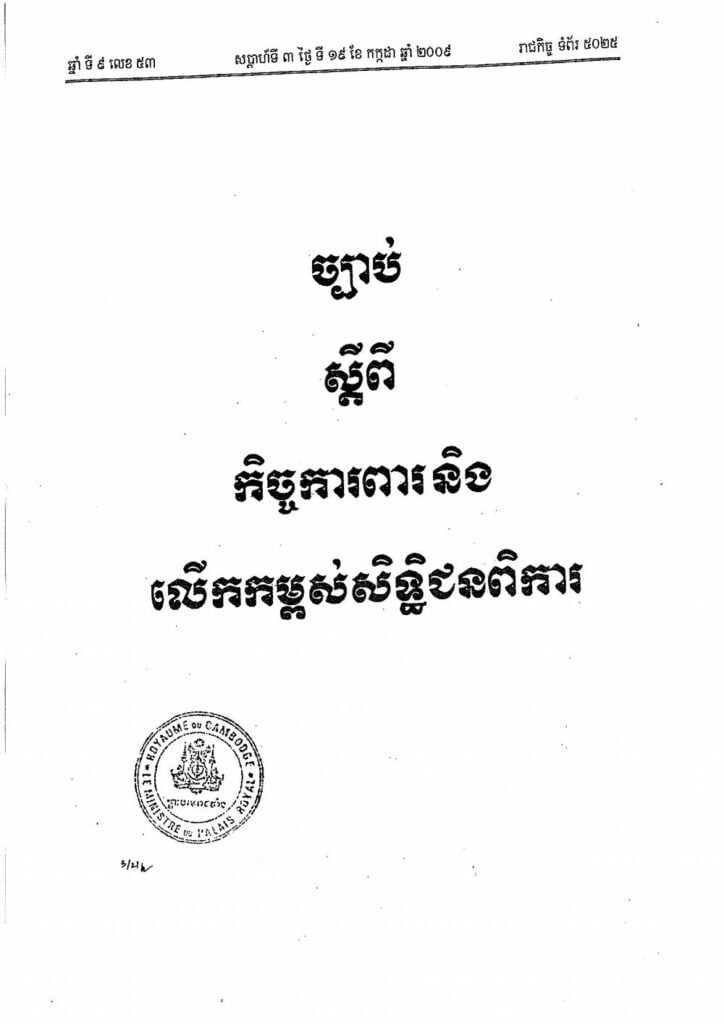 • ព្រះរាជក្រម ន្រកាសឱ្យប្រើច្បាប់ ស្តីពីកិច្ចការពារ និងលោកកម្ពស់សិទ្ធជនពិការ