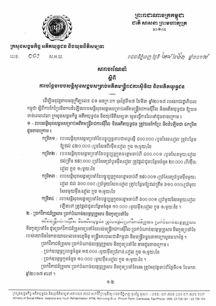 សារាចរណែនាំស្តីពីការបន្ថែមរបបសន្តិសុខសង្គមសម្រាប់អតីតមន្ត្រីរាជការស៊ីវិល និងអតីតយុទ្ធជន