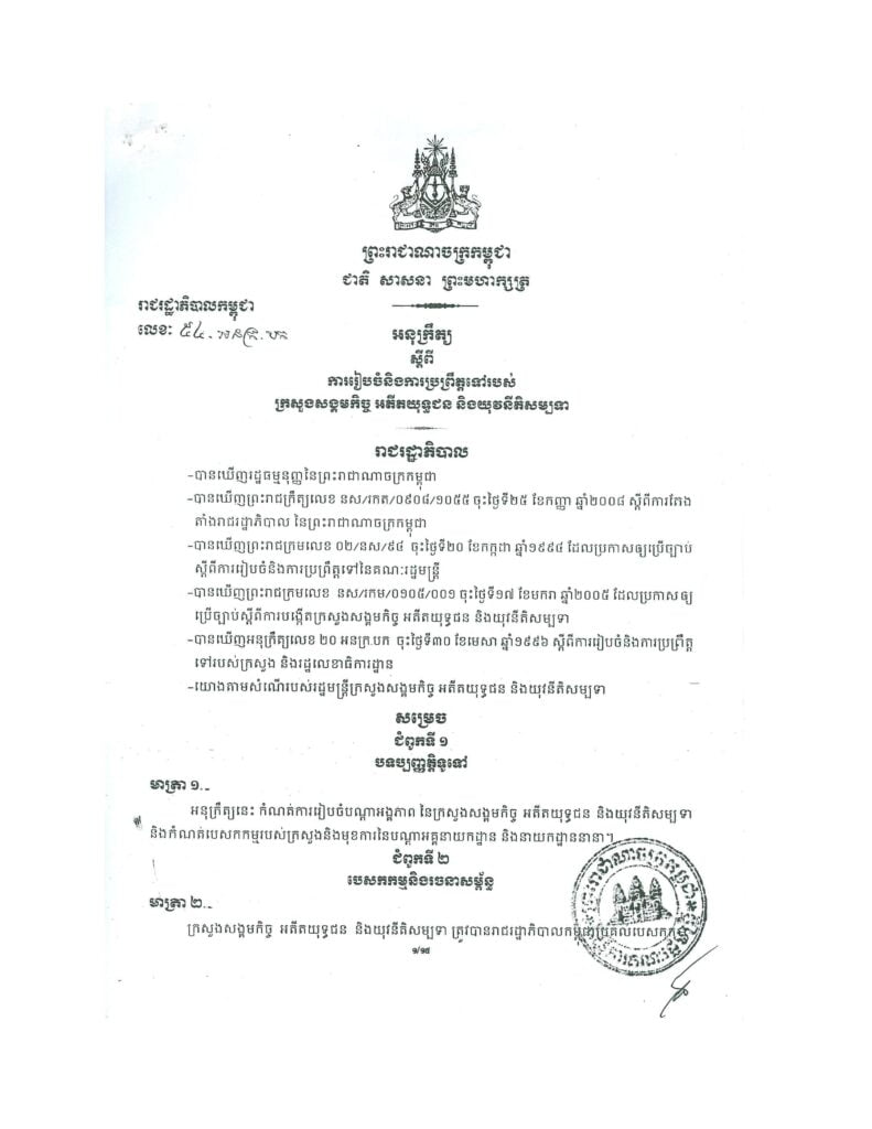 អនុក្រឹត្យស្តីពីការរៀបចំ និងការប្រព្រឹត្តទៅរបស់ក្រសួង ស.អ.យ