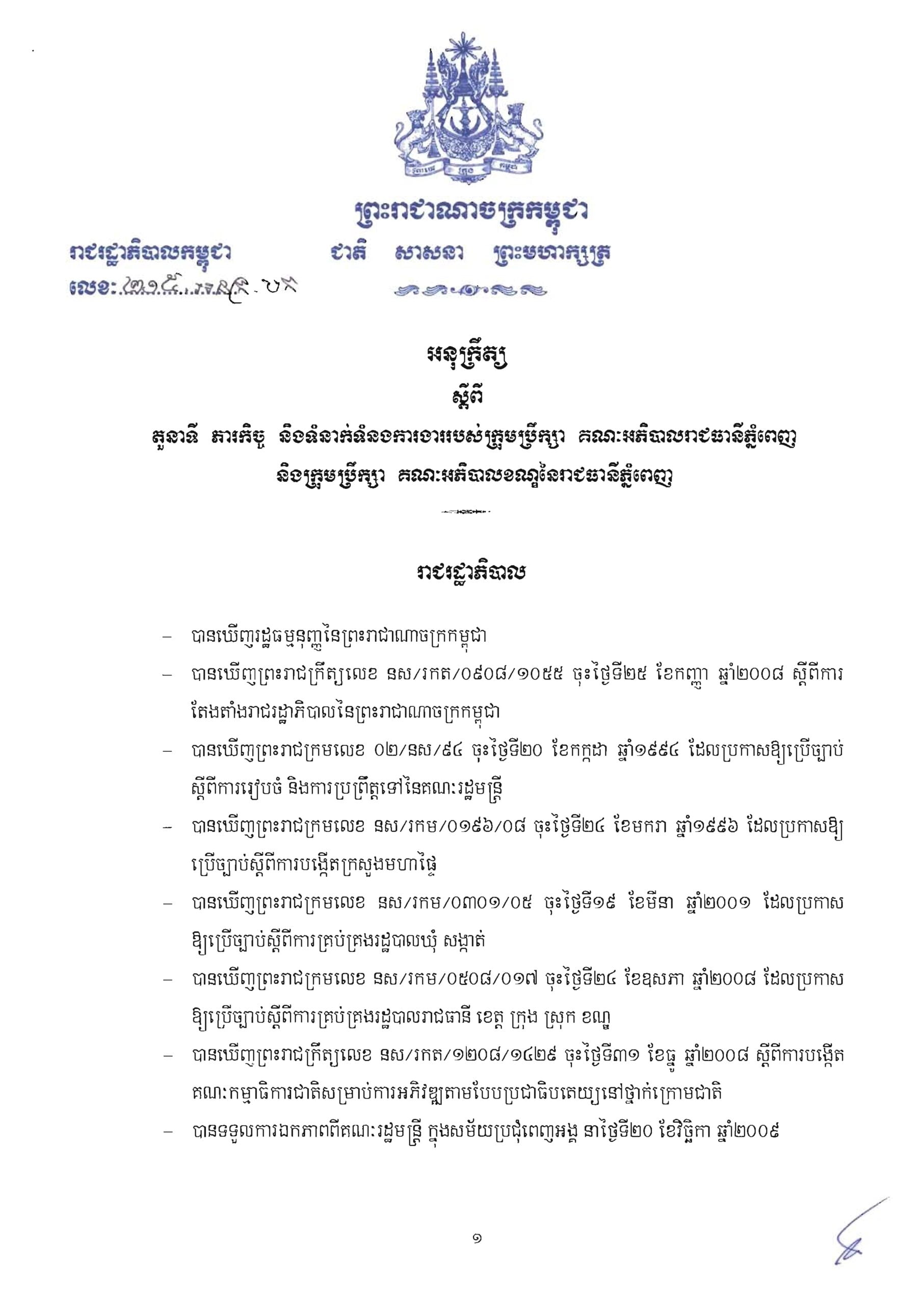 • អនុក្រឹត្យ ស្តីពីមិខងារ និងរចនាសម្ព័ន្ធរដ្ខបាលខណ្ឌនៃរាធានីភ្នំពេញ