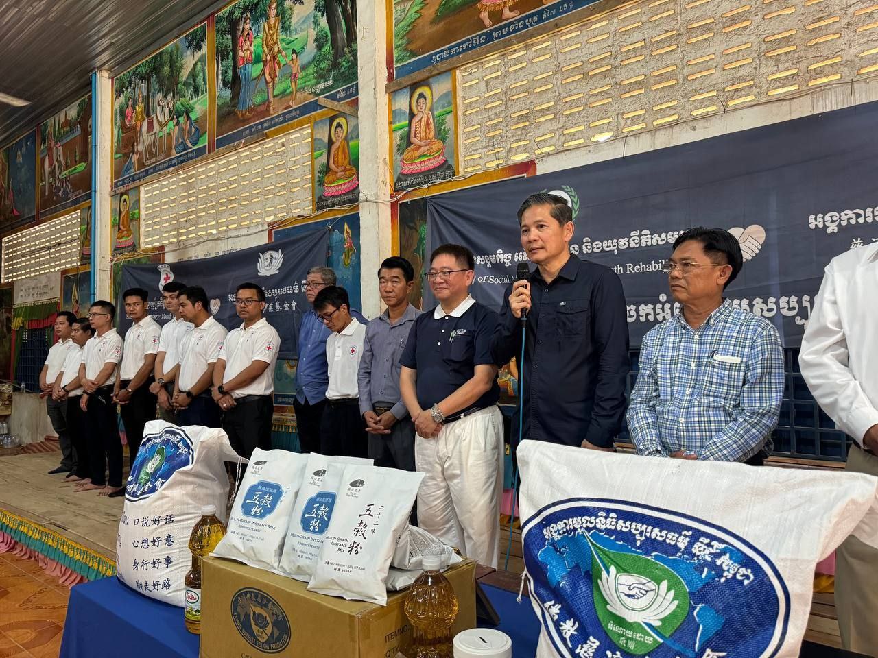 អំណោយសប្បុរសធម៌ដែលក្នុងម្នាក់ៗទទួលបានរួមមាន៖ អង្ករ ៤០គីឡូក្រាម ប្រេងឆា២លីត្រ ម្សៅធញ្ញជាតិ (៥០០ក្រាម) ២កញ្ចប់ នំបុ័ងមួយដើម និងទឹកបរិសុទ្ធ១ដប។