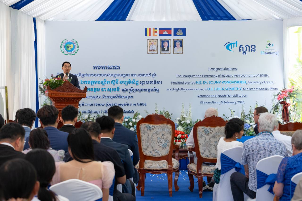នាព្រឹកថ្ងៃព្រហស្បតិ៍ ទី៥ ខែកុម្ភៈ ឆ្នាំ២០២៦ នៅមន្ទីរសម្រាកព្យាបាល ឌីនី សាន់សាញ (Diny Sunshine Medical Clinic) ដែលស្ថិតនៅក្នុងភូមិរំដួល សង្កាត់ស្នោរ ខណ្ឌកំបូល រាជធានីភ្នំពេញ អនុវត្តតាមការចាត់តាំងដ៏ខ្ពង់ខ្ពស់របស់ឯកឧត្តមរដ្ឋមន្ត្រី ឯកឧត្តមបណ្ឌិត ស៊ូនី វង្សវិសិដ្ឋ រដ្ឋលេខាធិការ បានអញ្ជេីញចូលរួមជាអធិបតីក្នុងពិធីសម្ពោធសមិទ្ធផលការងាររបស់អង្គការស្ពាន រយៈពេល ៣៥ឆ្នាំ ដោយមានការចូលរួមពីឯកឧត្តមរដ្ឋលេខាធិការក្រសួងធម្មការ និងសាសនា ឯកឧត្តម លោក លោកស្រី ថ្នាក់ដឹកនាំ និងមន្ត្រីក្រសួងស.អ.យ. លោកនាយកប្រតិបត្តិអង្គការស្ពាន និងជាកុងសុលកិត្តិយស ព្រះរាជាណាចក្រហូឡង់ ប្រចាំរាជធានីភ្នំពេញ ប្រធានអង្គការស្ពាន និងសហការី គណៈកម្មាធិការដឺ្រប៊ុគ និង ប្រធានអង្គការហ្វារីសដែលជាម្ចាស់ជំនួយមកពីប្រទេសហូឡង់ អាជ្ញាធរមូលដ្ឋាន សមាគមនិងអង្គការមិនមែនរដ្ឋាភិបាលដែលជាដៃគូរបស់អង្គការស្ពាន គ្រួសារក្រីក្រដែលបានទទួលជំនួយពីអង្គការ។