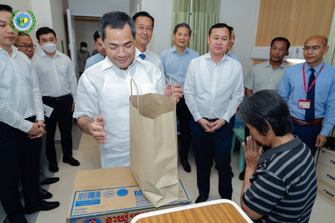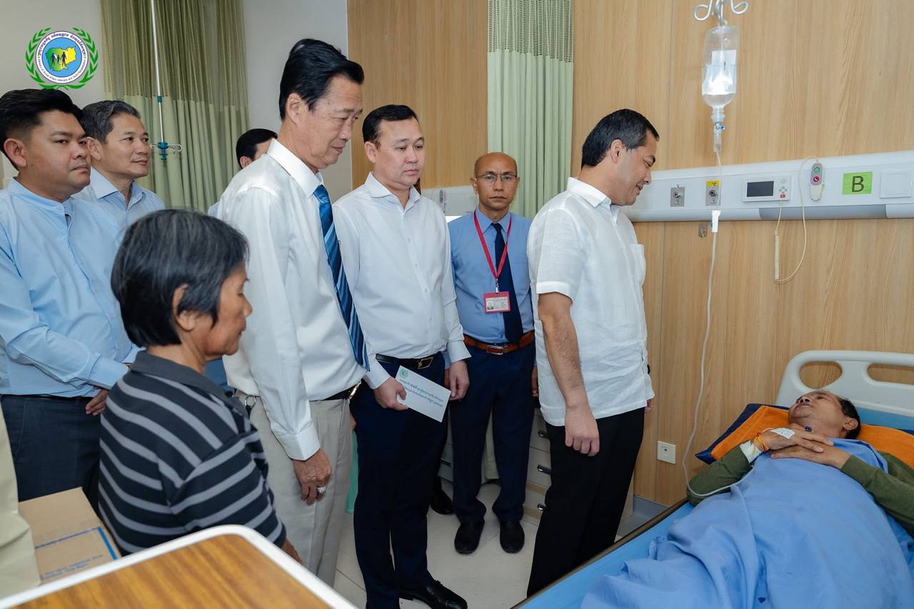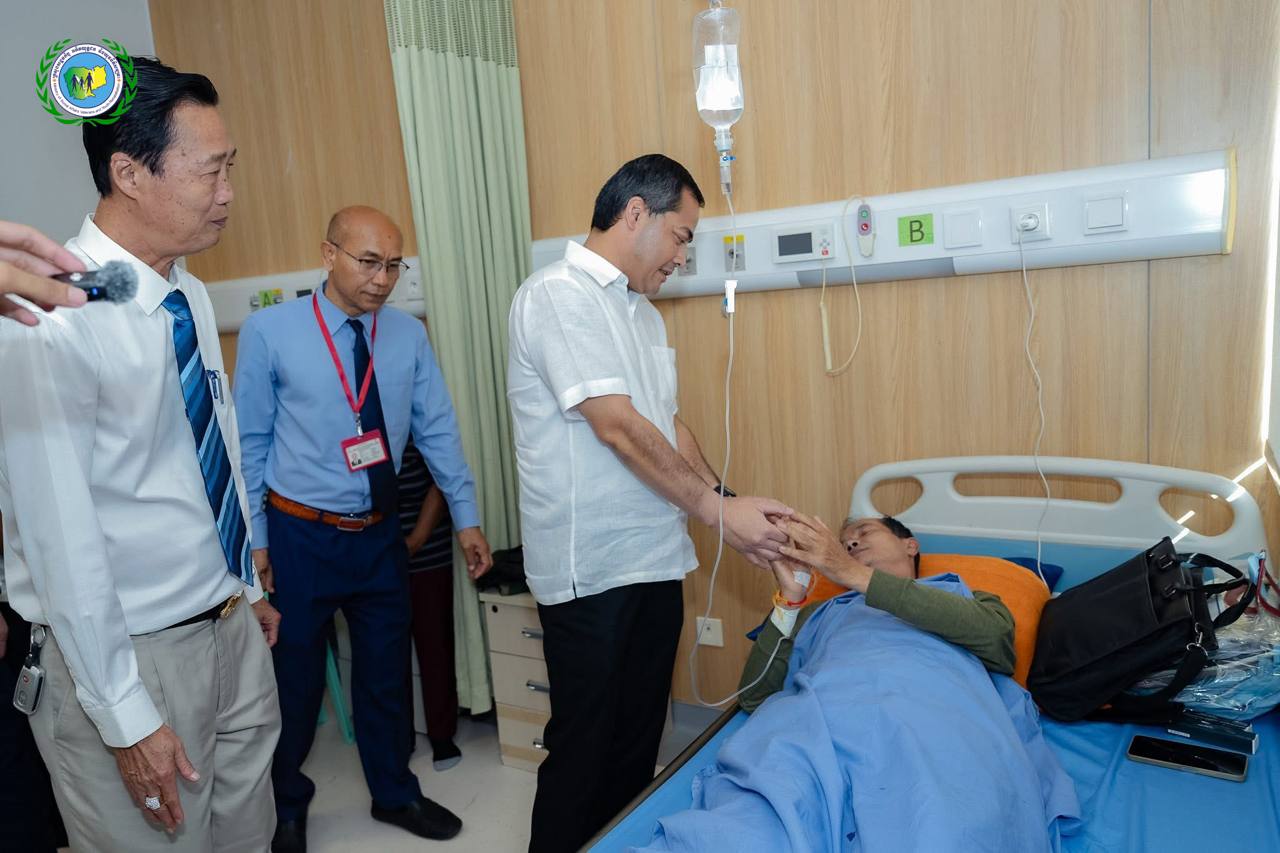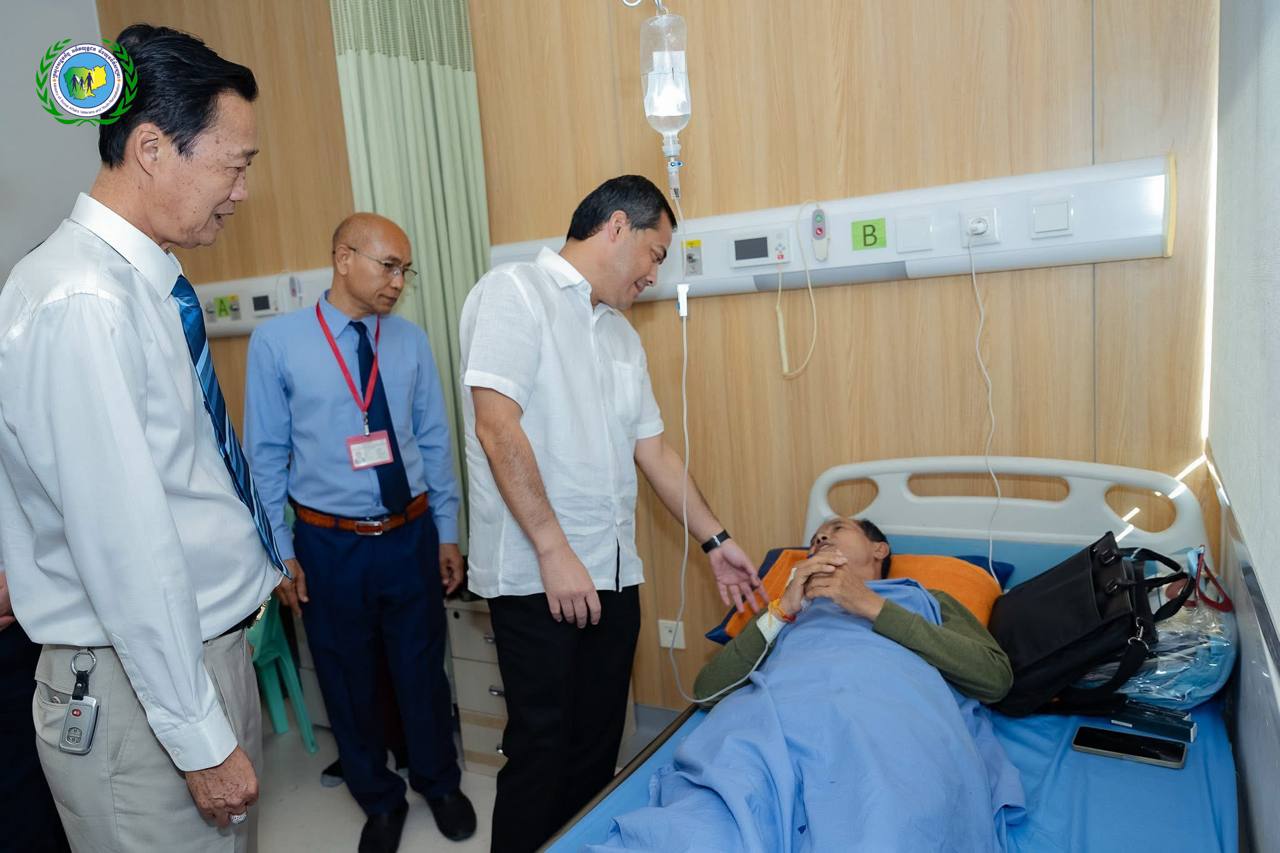 ឯកឧត្តមរដ្ឋមន្ត្រី សូមជូនពរដល់បងប្អូនប្រជាពលរដ្ឋ និងវីរកងទ័ពដែលរងរបួស ឆាប់បានជាសះស្បេីយ និងសូមជួបតែនឹងព្រះពុទ្ធពរទាំងបួនប្រការ កុំបីឃ្លៀងឃ្លាតឡេីយ នៅមន្ទីរពេទ្យមិត្តភាពកម្ពុជា-ចិន ព្រះកុសុមៈ (មន្ទីរពេទ្យព្រះសង្ឃ)។