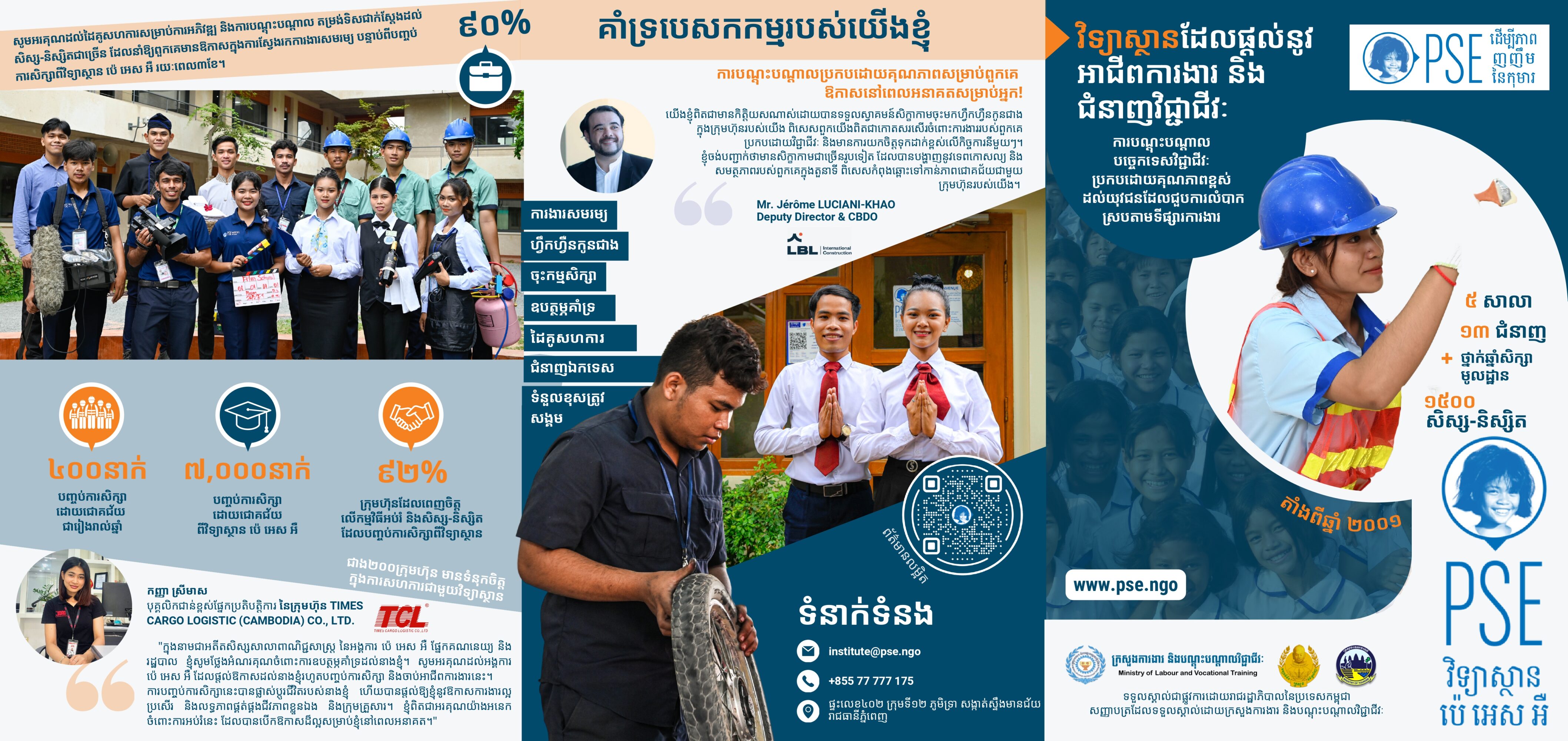 អាស្រ័យហេតុដូចបានជម្រាបជូនខាងលើ សូម លោក-លោកស្រី ប្រធានមន្ទីរសង្គមកិច្ច អតីតយុទ្ធជន និង យុវនីតិសម្បទា រាជធានី-ខេត្ត ជួយសហការជាមួយអង្គការ និងផ្សព្វផ្សាយបន្តអំពីអាហារូបករណ៍ខាងលើ ដើម្បីជាឧត្តម ប្រយោជន៍ដល់កុមារ និងយុវជនក្នុងគ្រួសារក្រីក្រ ជាពិសេសគ្រួសារវីរៈកងទ័ព កុមារ និងយុវជនមានពិការភាព។ សូម ទំនាក់ទំនងផ្ទាល់ជាមួយអង្គការ Pour un Sourire d’Enfant តាមរយៈអាសយដ្ឋាន ផ្ទះលេខ៤០២ ភូមិទ្រា សង្កាត់ស្ទឹង មានជ័យ ខណ្ឌមានជ័យ រាជធានីភ្នំពេញ និងទូរស័ព្ទ/Telegram៖ ០៩២ ៩៥៦ ០៨៥ / ០៧១ ៥៦៩៧ ១៦៥ / ០៩២ ២៩៥ ០៥២ អ៊ីមែល៖ contact-kh@pse.ngo។