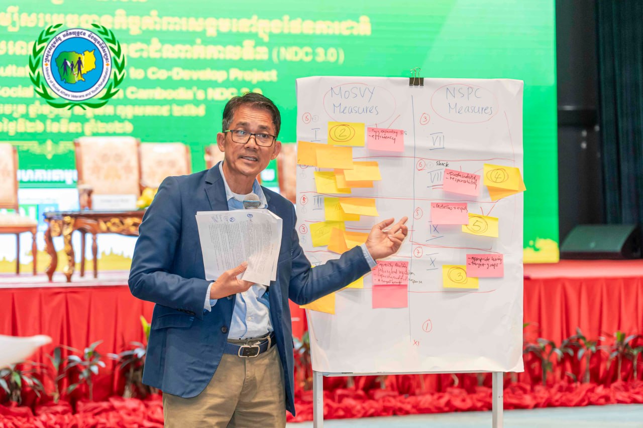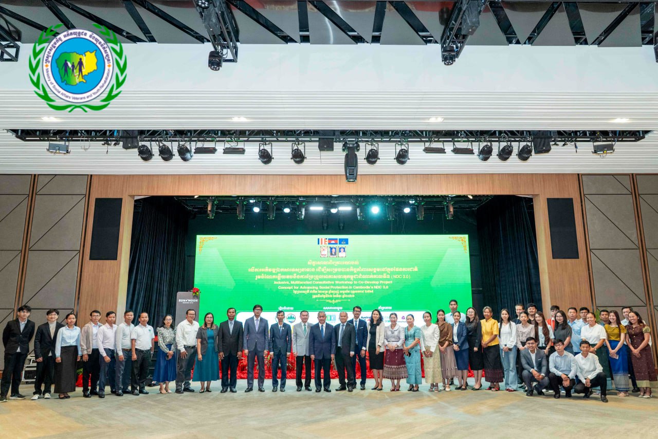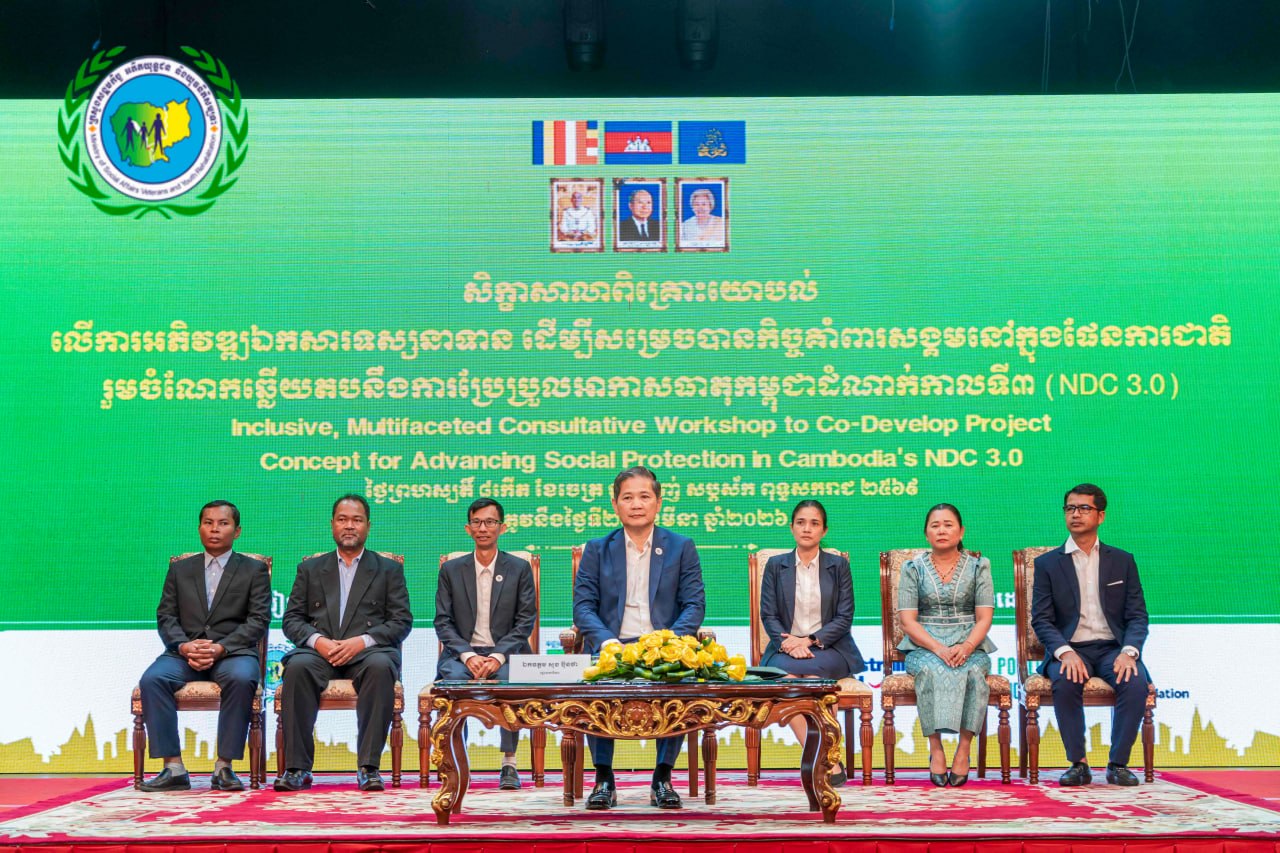 ដោយទទួលបានការអនុញ្ញាតដ៏ខ្ពង់ខ្ពស់ពីឯកឧត្តម ជា សុមេធី រដ្ឋមន្ត្រីក្រសួងសង្គមកិច្ច អតីតយុទ្ធជន និងយុវនីតិសម្បទា និងការគាំទ្រពី The Asia Foundation នៅថ្ងៃទី២៦ ខែមីនា ឆ្នាំ២០២៦ អគ្គនាយកដ្ឋានគោលនយោបាយសង្គមកិច្ចសហការជាមួយក្រសួងបរិស្ថាន វិទ្យាស្ថានជាតិសង្គមកិច្ច និងមជ្ឈមណ្ឌលសម្រាប់ការវិភាគបញ្ហាអភិវឌ្ឍន៍ បានរៀបចំសិក្ខាសាលាពិគ្រោះយោបល់លើការអភិវឌ្ឍឯកសារទស្សនាទាន ដើម្បីសម្រេចបានកិច្ចគាំពារសង្គមនៅក្នុងផែនការជាតិរួមចំណែកឆ្លើយតបនឹងការប្រែប្រួលអាកាសធាតុនៅកម្ពុជា-ដំណាក់កាលទី៣ (NDC 3.0) ក្រោមអធិបតីបើកដោយឯកឧត្តមបណ្ឌិត អុល រ៉ូ រដ្ឋលេខាធិការ និងអធិបតីបិទដោយឯកឧត្តម សុខ ប៊ុនថា រដ្ឋលេខាធិការ នៅសណ្ឋាគារ Sun & Moon Riverside ដែលមានអ្នកចូលរួមពីក្រសួង ស្ថាប័នពាក់ព័ន្ធ ដៃគូអភិវឌ្ឍន៍ អង្គការសង្គមស៊ីវិល សាកលវិទ្យាល័យ និងអ្នកស្រាវជ្រាវ សរុបប្រមាណ ៨០នាក់។