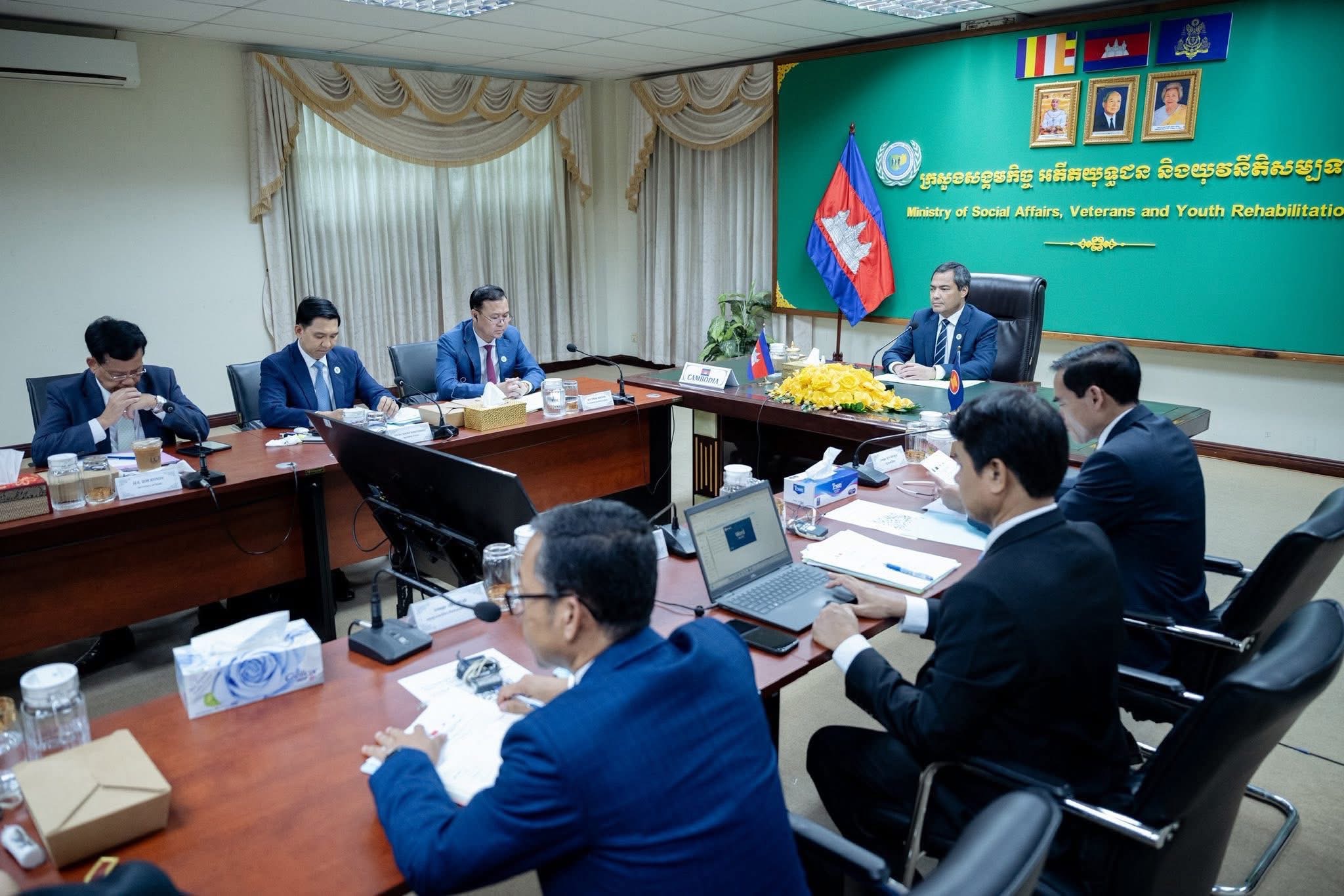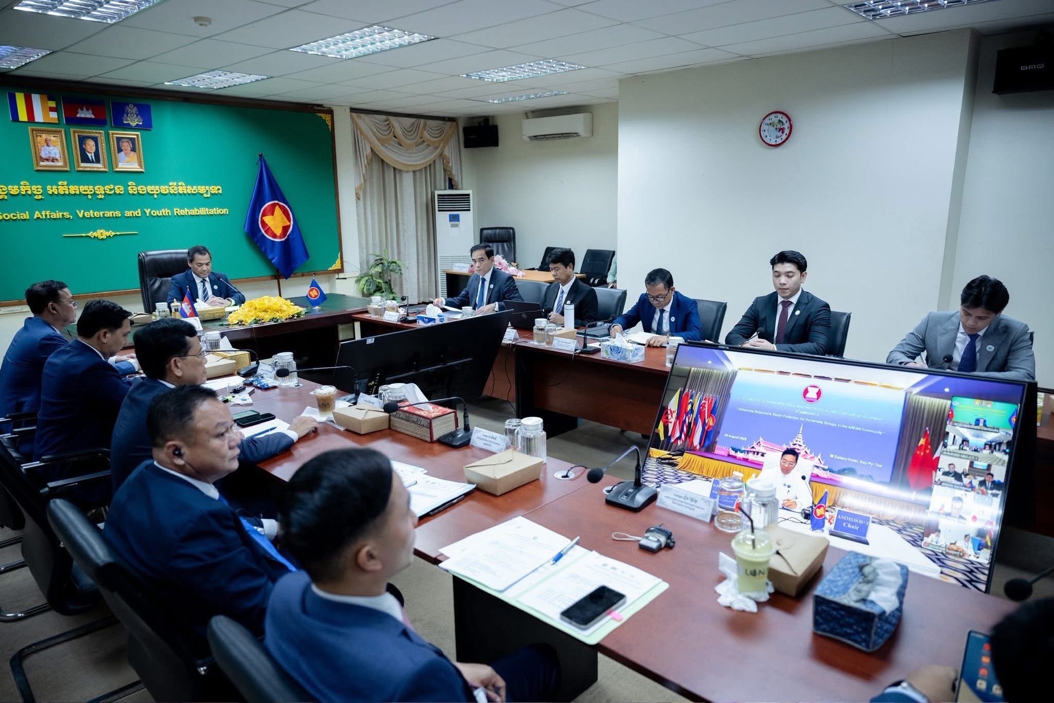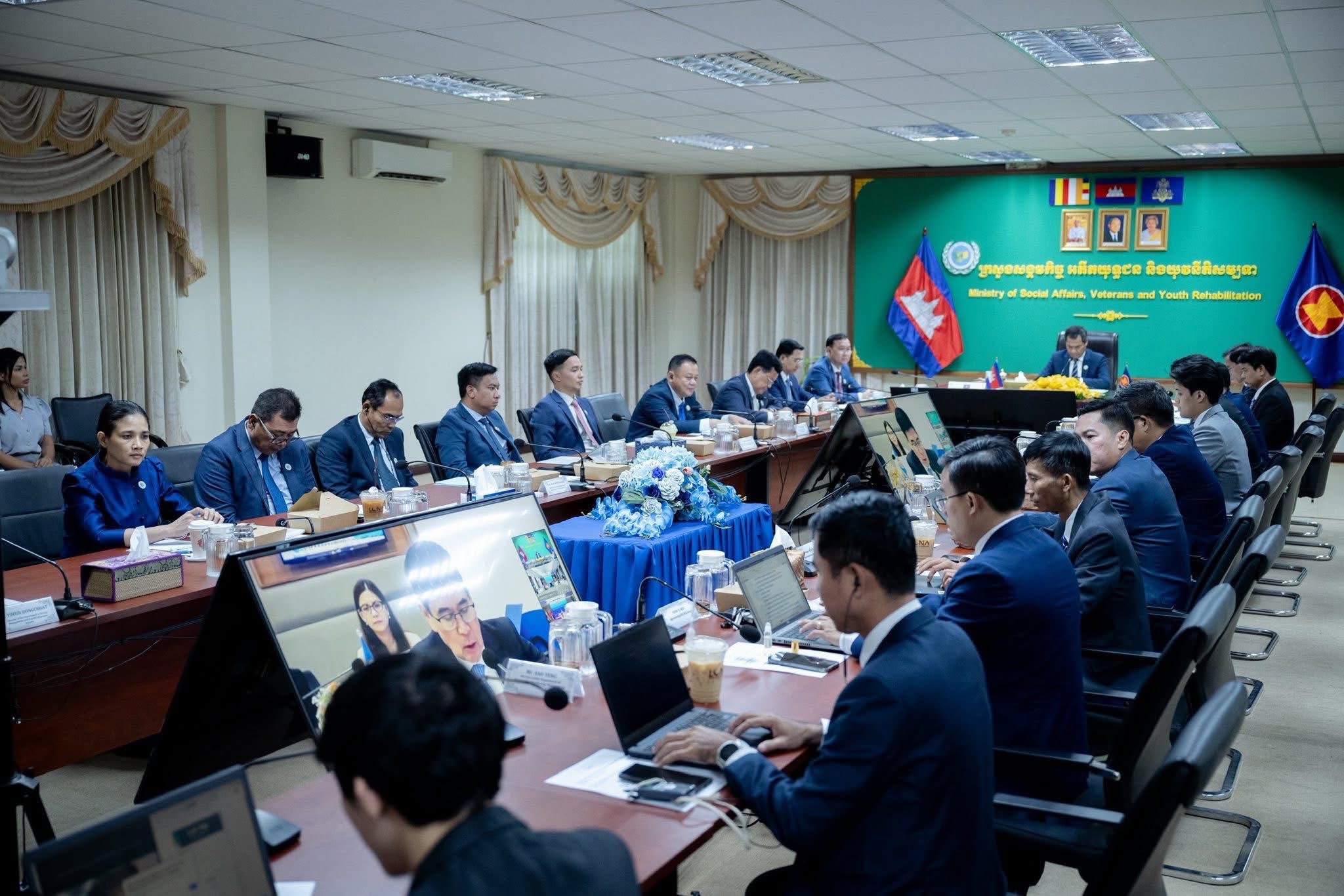 នៅរសៀលថ្ងៃសុក្រ ទី២៩ ខែសីហា ឆ្នាំ២០២៥ ឯកឧត្តម ជា សុមេធី រដ្ឋមន្ត្រីក្រសួងសង្គមកិច្ច អតីតយុទ្ធជន និងយុវនីតិសម្បទា និងថ្នាក់ដឹកនាំក្រសួង ស.អ.យ. បានចូលរួមកិច្ចប្រជុំរដ្ឋមន្ត្រីអាស៊ានបូកបី ស្ដីពីសុខុមាលភាព និងការអភិវឌ្ឍសង្គម លើកទី៨ (8th AMMSWD+3) «ការពង្រឹងកិច្ចគាំពារសង្គមដែលមានការឆ្លើយតប សម្រាប់ក្រុមជនងាយរងគ្រោះនៅក្នុងសហគមន៍អាស៊ាន» តាមប្រព័ន្ធវីដេអូ Conference នៅទីស្ដីការក្រសួង ស.អ.យ.។