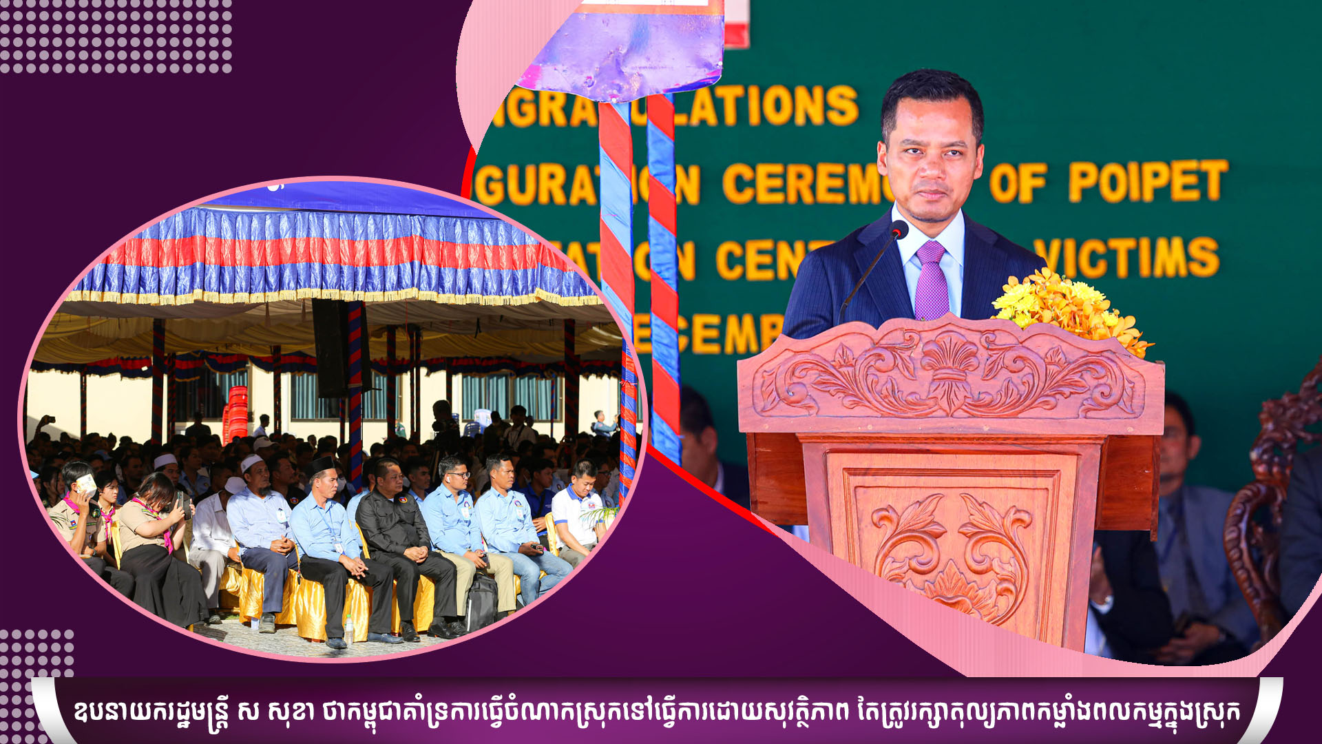 • ផ្សាយផ្ទាល់៖ អបអរសាទរពិធីសម្ភោធដាក់ឲ្យប្រេីប្រាស់ជាផ្លូវការមជ្ឈមណ្ឌលសំចតនិងស្ដារនីតិសម្បទាជនរងគ្រោះ ប៉ោយប៉ែត