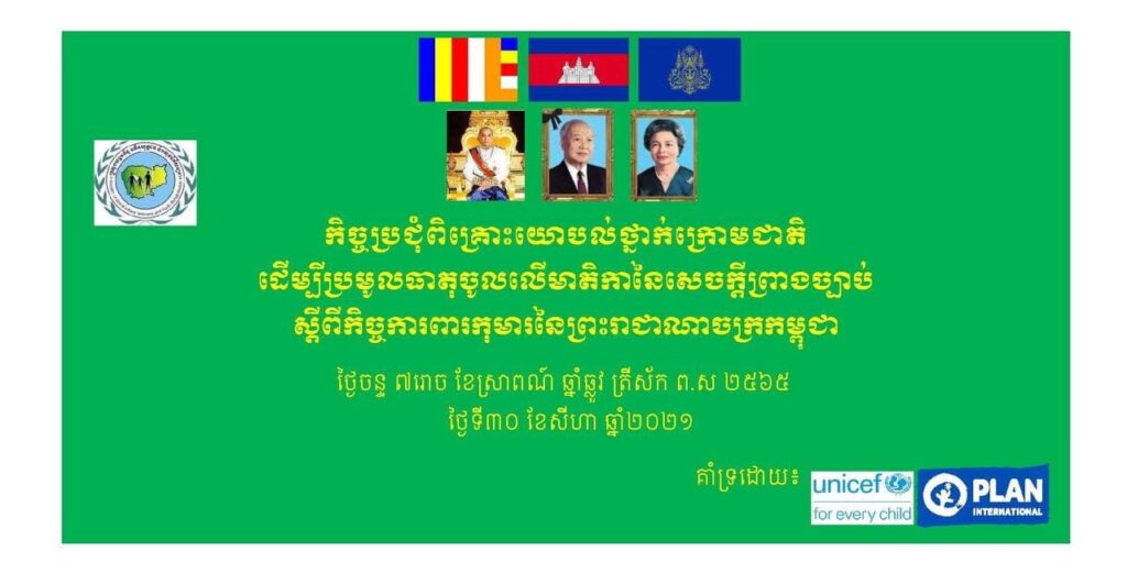 • កិច្ចប្រជុំពិគ្រោះយោបល់ថ្នាក់ក្រោមជាតិដើម្បីប្រមូលធាតុចូលលើមាតិកានៃសេចក្តីព្រាងច្បាប់ ស្ដីពីកិច្ចការពារកុមារ