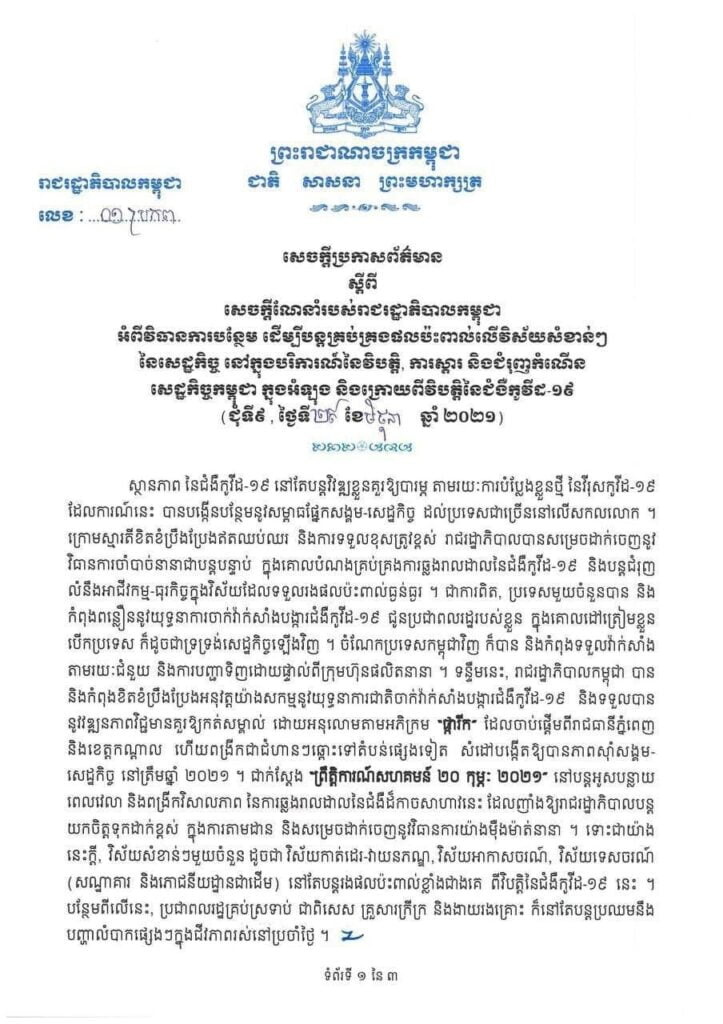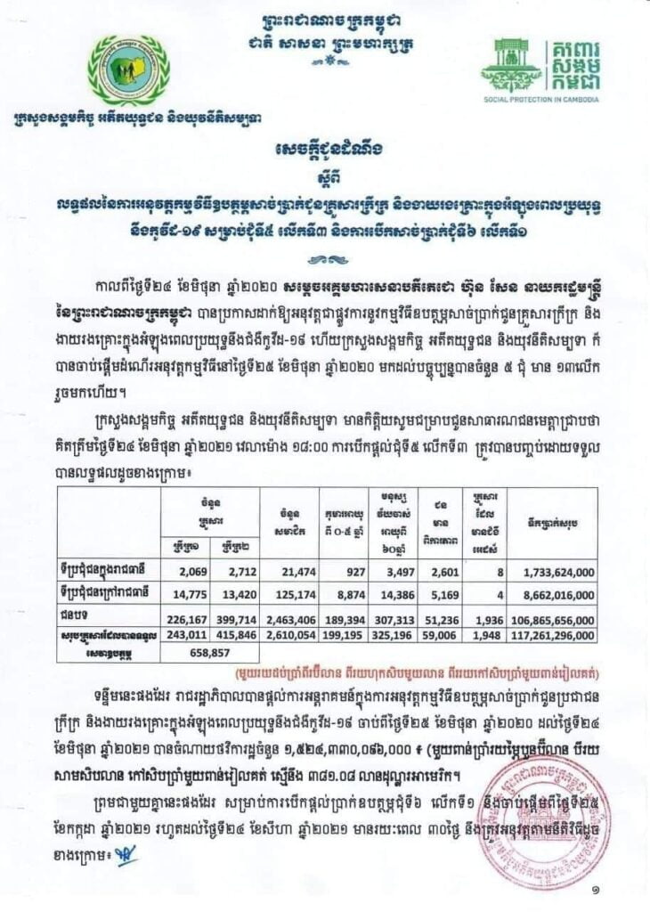 • សេចក្តីជូនដំណឹង ស្តីពីលទ្ធផលនៃការអនុវត្តកម្មវិធីឧបត្ថម្ភសាច់ប្រាក់ជូនគ្រួសារក្រីក្រ និងងាយរងគ្រោះក្នុងអំឡុងពេលប្រយុទ្ធនឹងជំងឺកូវីដ_១៩
