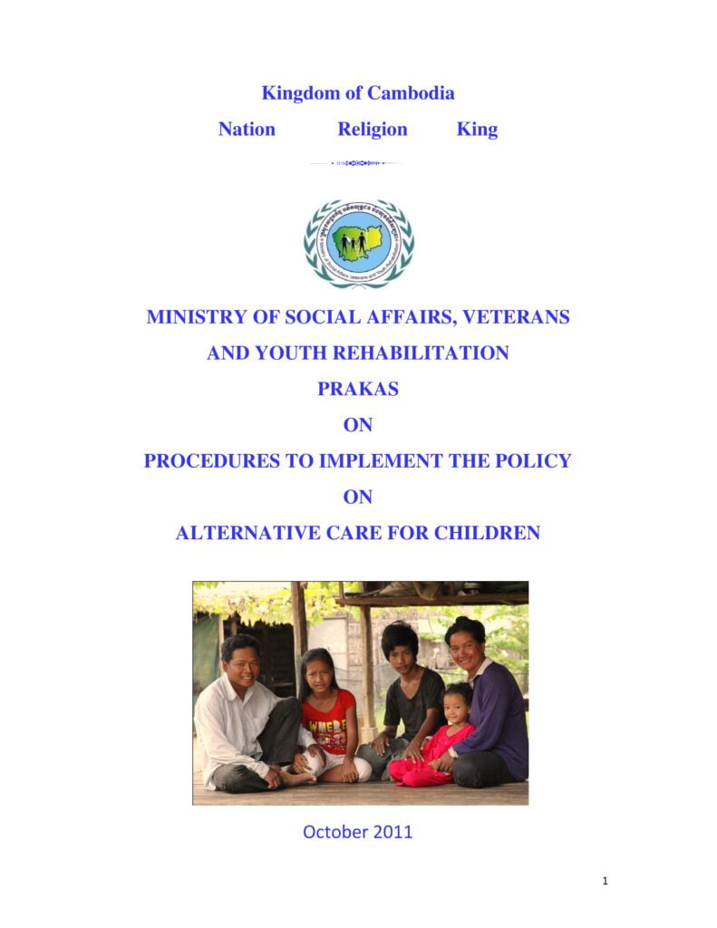 • PRAKAS ON PROCEDURES TO IMPLEMENT THE POLICY ON ALTERNATIVE CARE FOR CHILDREN October 2011