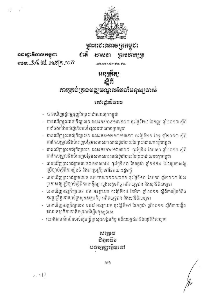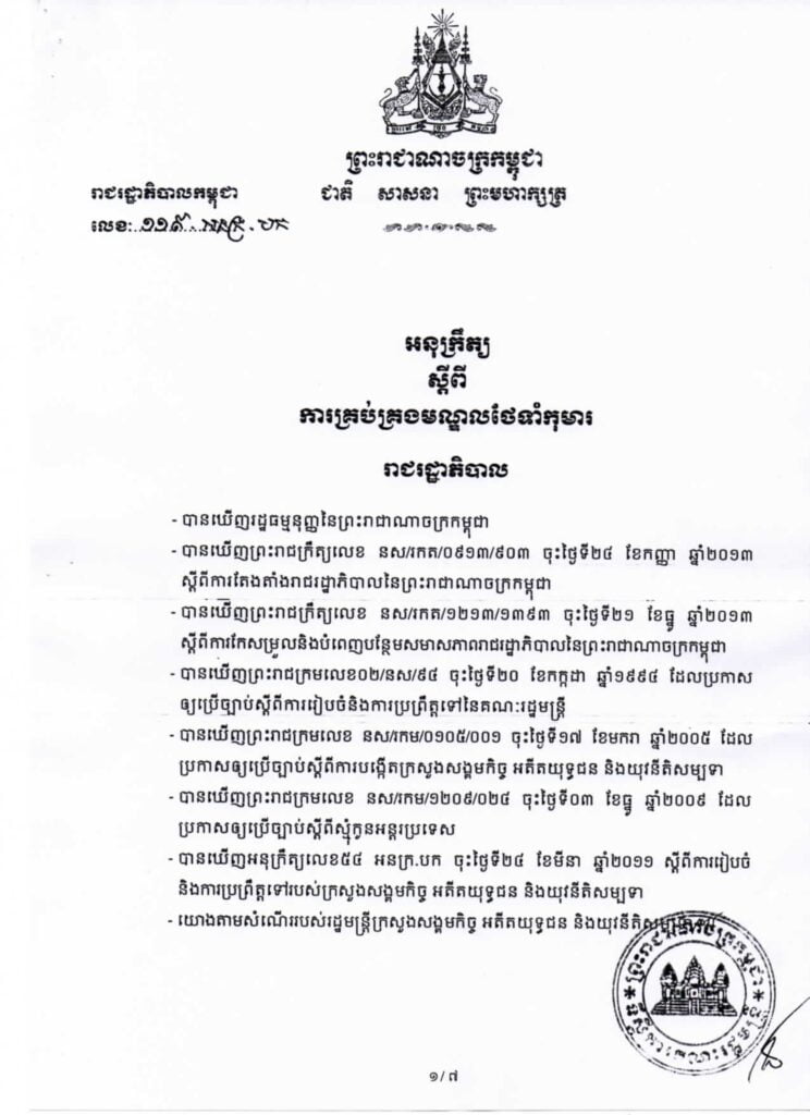 • អនុក្រឹត្យ ស្តីពីការគ្រប់គ្រងមណ្ឌលថែទាំកុមារ