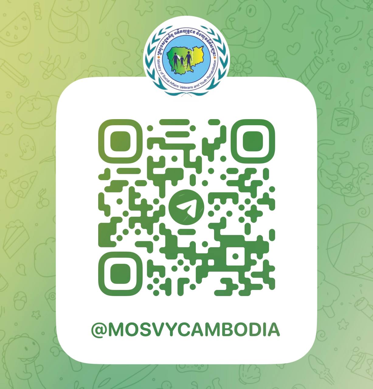 សូមអញ្ជើញJoin link https://t.me/mosvycambodia ឆាណែលតេឡេក្រាមផ្លូវការរបស់ក្រសួងសង្គមកិច្ច អតីតយុទ្ធជន និងយុវនីតិសម្បទា ដើម្បីទទួលបានព័ត៌មានសកម្មភាពថ្មីៗ និងលិខិតបទដ្ឋានគតិយុត្តិផ្សេងៗរបស់ក្រសួងសង្គមកិច្ច អតីតយុទ្ធជន និងយុវនីតិសម្បទា។